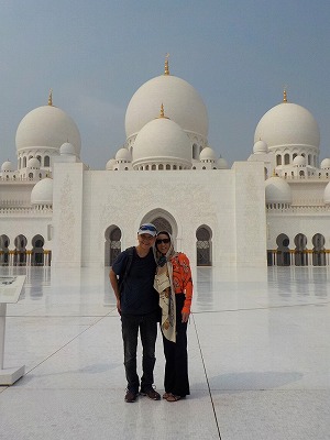 翌日の午前中は、Jさんの仕事があるため、僕たちは単独行動することになった。目指すは、「グランドモスク」、正式には「シーク・ザイド・グランド・モスク」。アブダビの「必見スポット」の一つだ。結構新しく、一九九六年から建設が始まり、二〇〇七年に竣工したという。作ったのは、もちろん、超々お金持ちの、アブダビの大統領である。「大統領」っていうと、何となく選挙で選ばれたという印象があるが、アブダビの大統領はほぼ世襲。これまで、初代大統領の息子や親族が、歴代の大統領をやっている。「選挙」はあるらしいが、あくまで一族の中での選挙。国民の直接投票ではない。実際は「王国」なのである。ホテルや商店には、現在と先代の大統領の写真が掲げられている。僕はつぶやく。