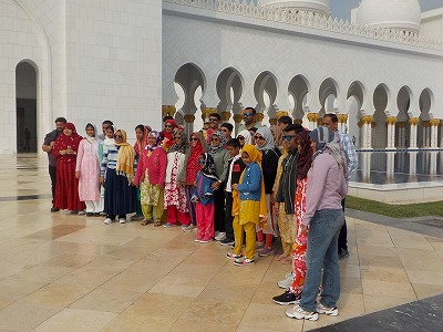 そう感じる。モスクであるから、宗教行事の場所である。しかし、アブダビの観光名所にしようと思って作られた意図は明確。いたる所に、「写真スポット」があり、そこに立てば、インスタグラムに載せる写真はバッチリねという感じ。モスクの建物の中は、二千五百人が一斉にお祈りが出来るという。そこに「一枚」の絨毯が敷かれているのだ。当然世界で一番広い絨毯。何から何まで桁違いであった。