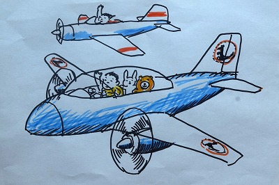 一分で描いた、エンゾーの乗る飛行機。出来はともかく、速いのが取り柄。