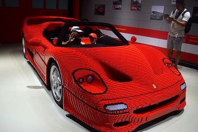 と思っていた。いよいよフェラーリとご対面。実際に乗り込むこともできる。流れるような流線形が、見事に赤いレゴで表現されていた。