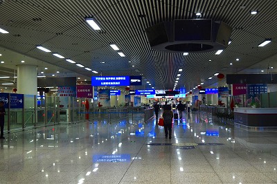 深圳福田駅。深圳の駅はどこもメッチャ広いが、人影はまばら。