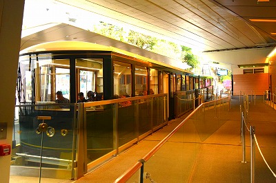 ヴィクトリアピークに登るレトロなケーブルカー。