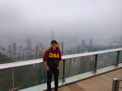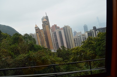 全長千四百メートル、所用時間約十分のケーブルカーの終点は、半月型の展望台だった。展望台の中には、エスカレーターがある。一番上まで行くと。湾の眺望が開けた。今日の眺望はイマイチ。ガスがかかっていて、湾や、それ取り巻くビル群は霞んでいる。