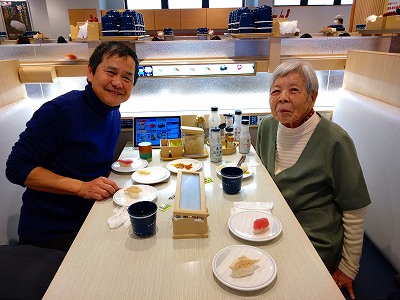 回転寿司デビューを果たした継母と。また七十五日、寿命が延びた。